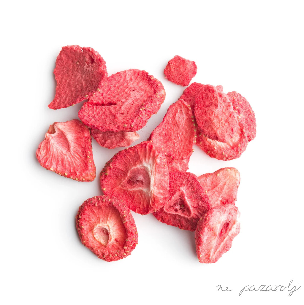 A liofilizált eper finom, roppanós textúrájú gyümölcsszelet, amely megőrzi az eper természetes ízét és tápanyagait. C-vitaminban gazdag, antioxidáns hatású nassolnivaló.